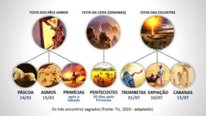 De acordo com o livro de Êxodo, Deus instituiu Três Festivais de Peregrinação, ou seja, Três Convocações Sagradas, tendo como referência: Páscoa, Pentecostes e Tabernáculos.